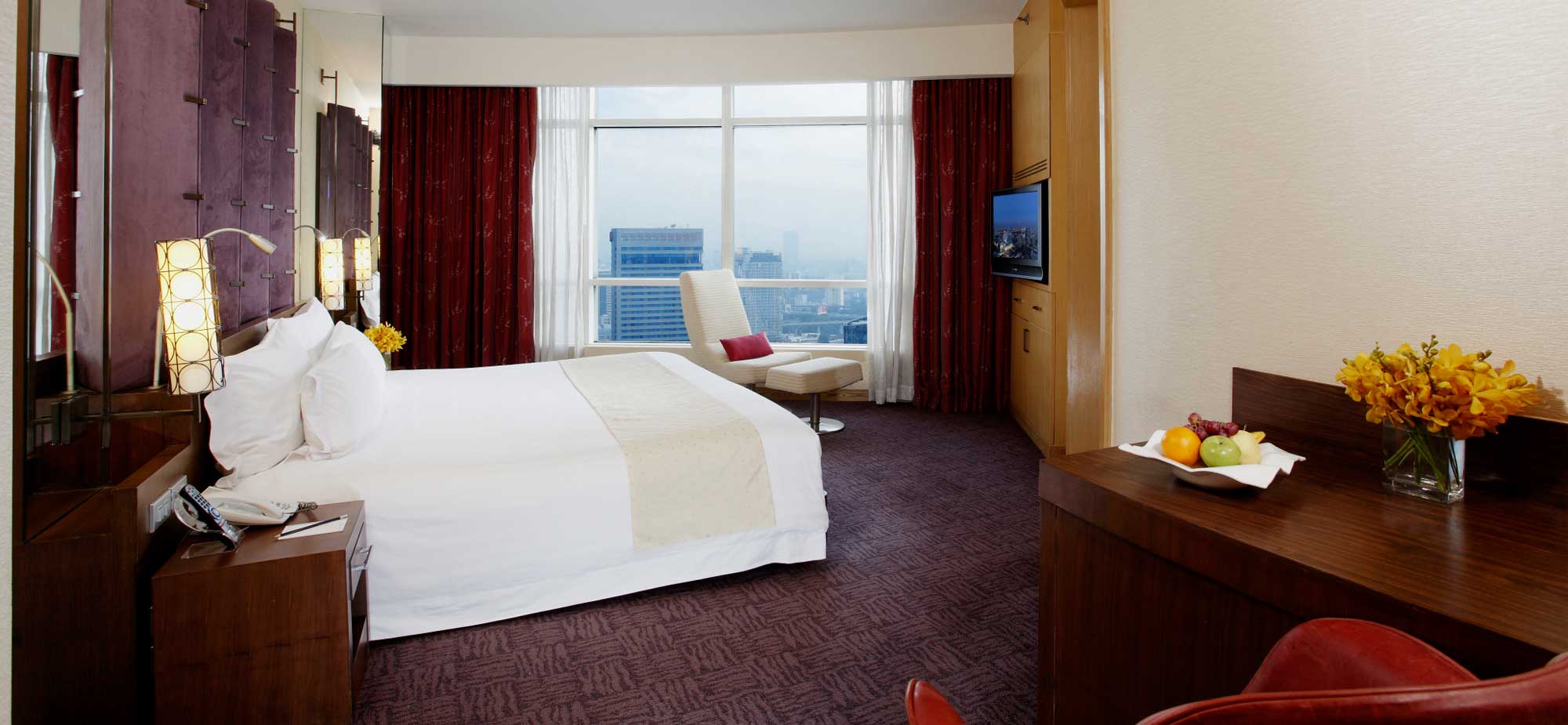 享受舒适的酒店高级房,俯瞻曼谷市区的绝佳美景。客房总面积达32平米,提供旅客所有需求,包括含有浴缸及独立淋浴的浴室以及办公桌,豪华的加大双人床可容纳2位成人及1位儿童。