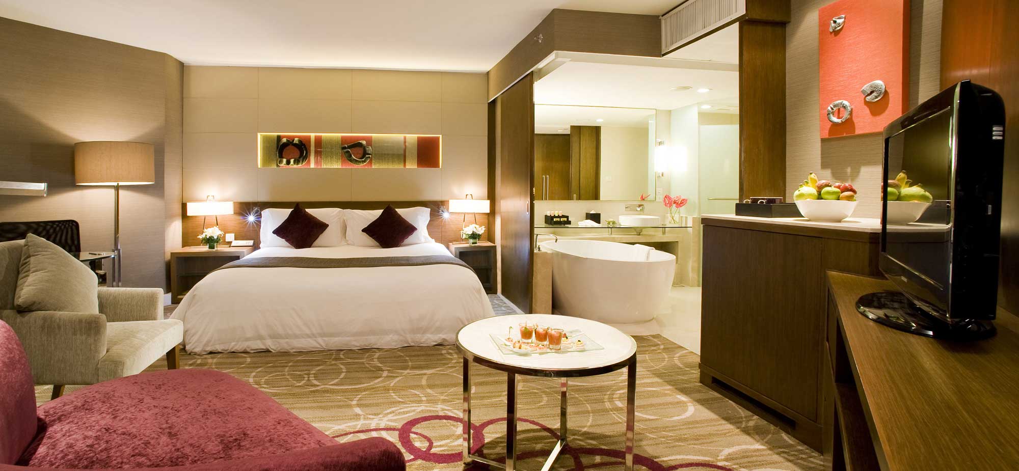 在奢华广场套房内尽情舒展,宽敞的起居空间提供您与家人朋友放松或团聚,豪华气派的主卧室备有步入式衣橱。套房位于顶楼,高雅舒适的装潢贯穿90平方米生活空间,大型玻璃窗让您享有美丽的都市风景,为您打造像家一样舒适的入住体验。 主卧室备有加大双人床可舒适地容纳3位成人,或2位成人和一位孩童,浴室设有独立 ...