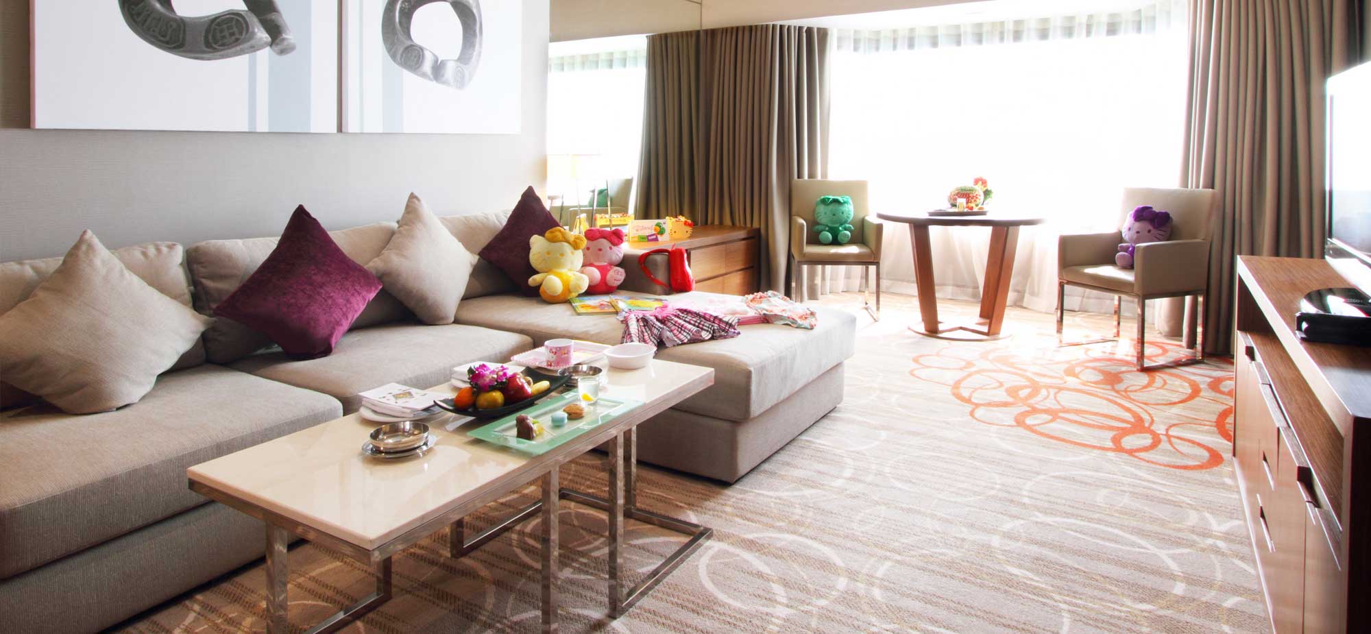 在奢华广场套房内尽情舒展,宽敞的起居空间提供您与家人朋友放松或团聚,豪华气派的主卧室备有步入式衣橱。套房位于顶楼,高雅舒适的装潢贯穿90平方米生活空间,大型玻璃窗让您享有美丽的都市风景,为您打造像家一样舒适的入住体验。 主卧室备有加大双人床可舒适地容纳3位成人,或2位成人和一位孩童,浴室设有独立 ...
