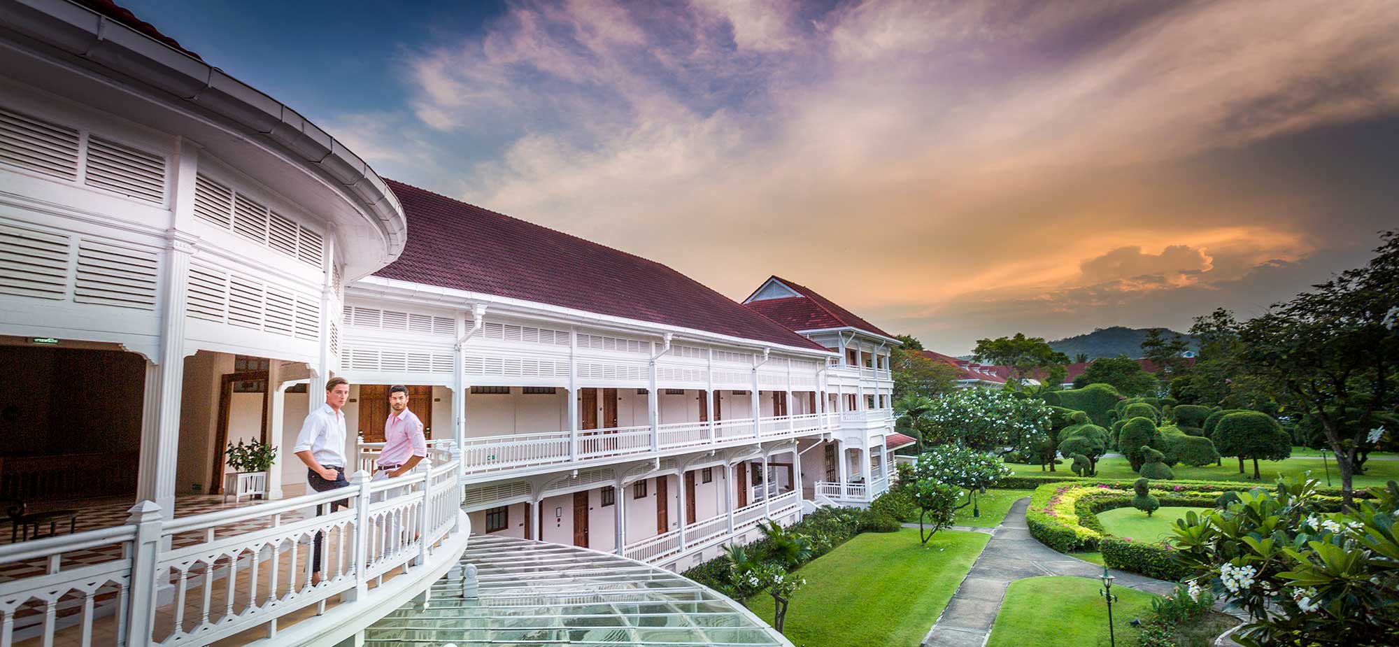 华欣盛泰澜海滩别墅&渡假村于1920年代第一次开门迎宾,当时通往马来西亚的新铁路将华欣颓靡的渔村转变成泰国第一个海滩度假村。原名为铁路酒店的渡假村,沿着旧铁路而建,现今已然成为世界公认的亚洲宏伟酒店之一。精致扩建与装修后的渡假村弥漫着高雅怀旧风情,这里是一美丽渡假胜地,座落于海滨处,并位于市中心的优越地段,四周花园繁茂,在此悠闲漫步于徐徐海风,是您探索城市和购物的天堂,适合情侣或家人出游。