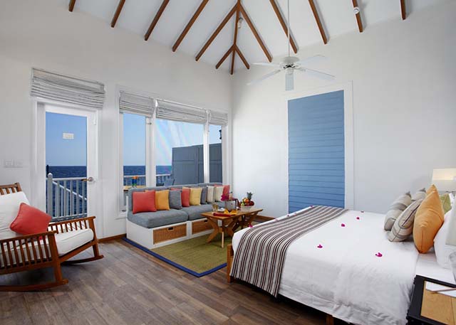 适合合家入住的水上别墅专为携带幼童的家庭设计,拥有总面积93平方米舒适生活空间。 儿童休憩室设有双层床位和PS 游戏机,为保护幼童,更加装通往阳台安全装备。