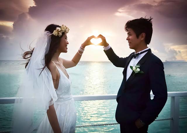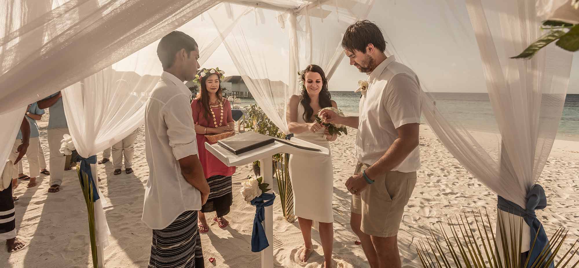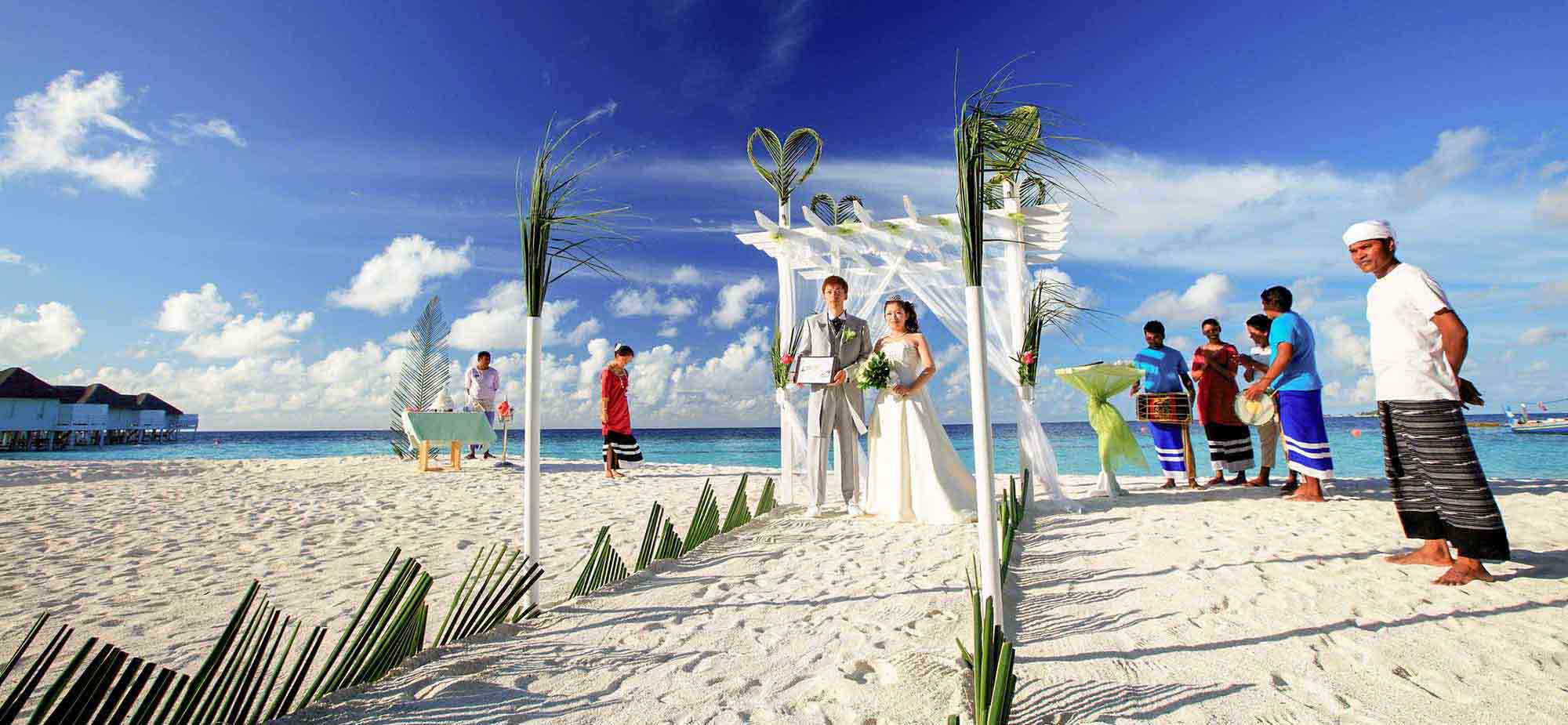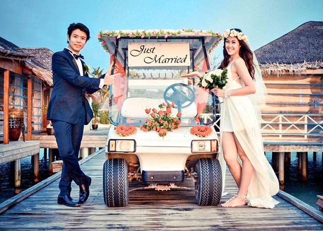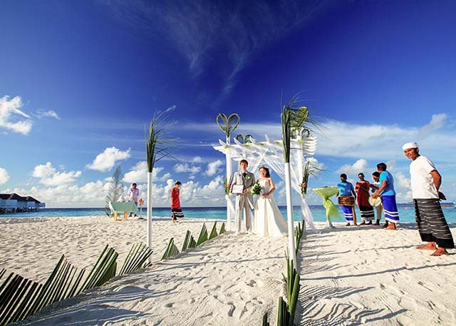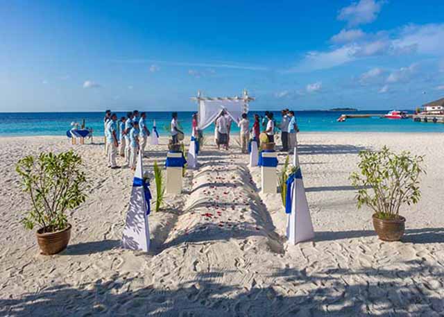 - Maldivian-themed floral decoration of the wedding venue (beach or terrace at The Club)