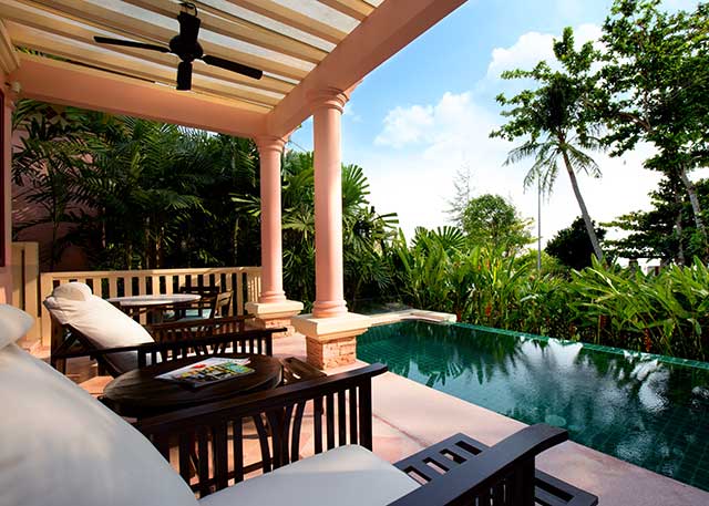 设有18间顶级豪华温泉房,充满柔和感的设计,打造放松舒适的空间。客房面积为67平米,配有一个户外按摩浴缸,同时在带有家具的阳台能眺望安达曼海,欣赏酒店泳池及花园美景。以情侣出游及家庭渡假为旨,备有特大号床,可容纳2位成人,也可选择两张双人床,可容纳3位成人,或2位成人加2位儿童。浴室内设有独立淋浴。