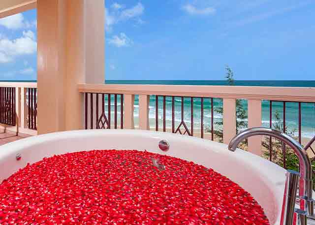 可应要求为您提供阳台连通至豪华温泉海景房的房型。