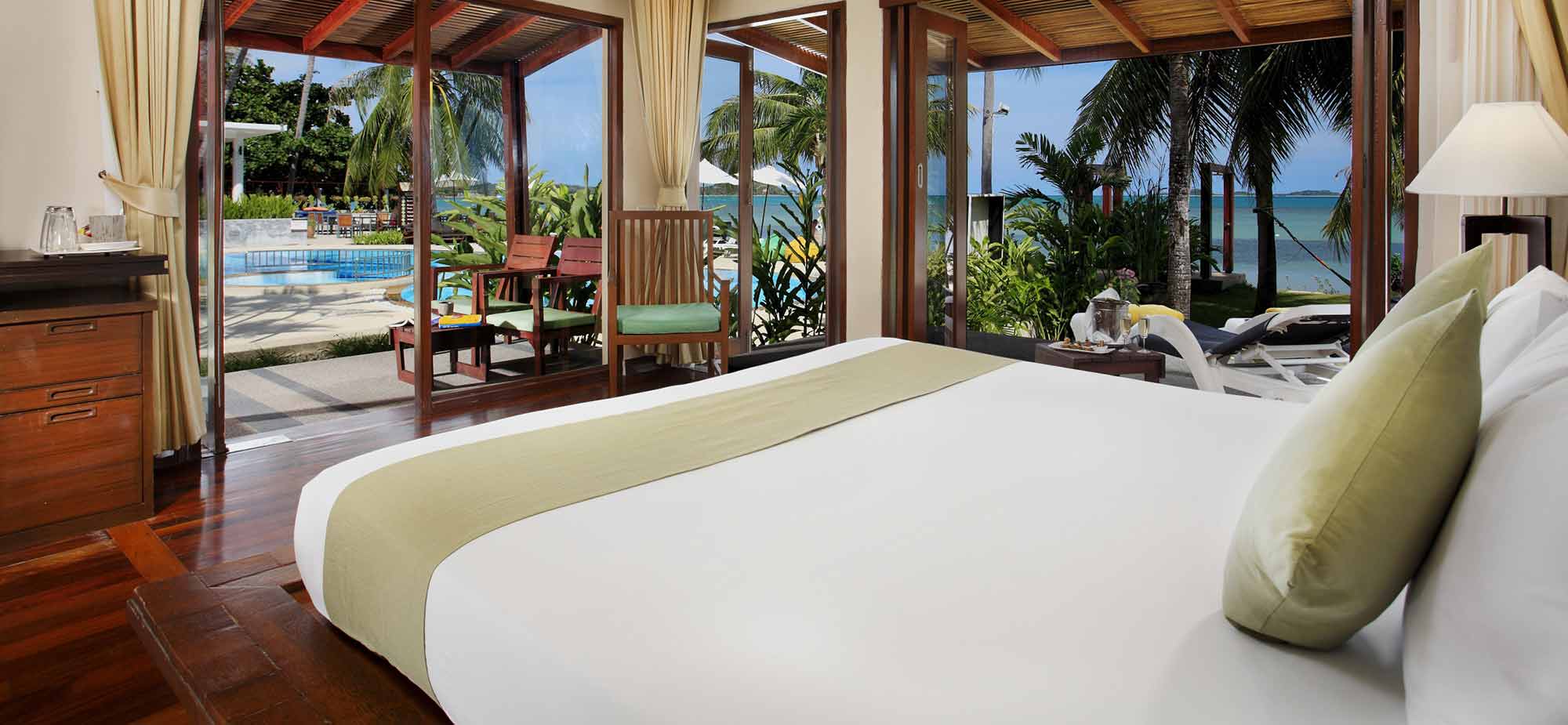 豪华海景别墅提供了极大的舒适感,因为它提供了方便地访问我们的梦幻般的沙滩。 客人可以在自己的室内按摩,或在海滨游泳池游泳仅数步之遥。 该别墅包括63平方米共包括宽敞的露台,适合2名成人和1名儿童国王的卧室。 客房内的设施包括免费无线上网,独立控制的空调,卫星电视,迷你酒吧,茶及咖啡设施,室内保险箱和吹风机。