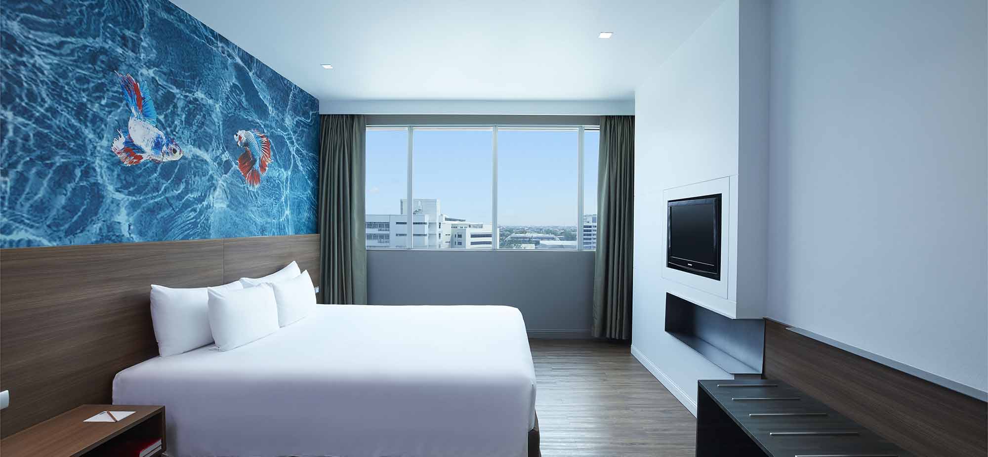 每间Centra高级房可以提供大号床和两张单人床的选择。拥有30平方米舒适生活空间的客房可以容纳至3成人或2成人1儿童。房间配有淋浴房的洗漱间。