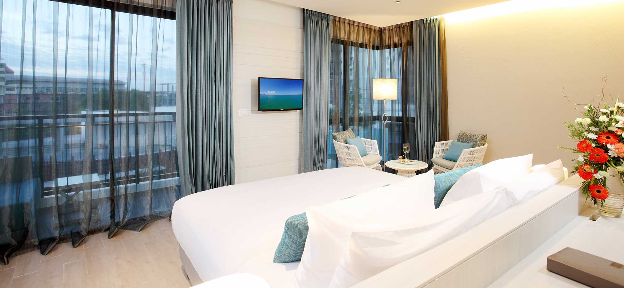 You will be able to take in great views as you relax on your balcony. Modern in design, each of the eight Centra Suites offers generous living space of 69 square metres, with the open-plan separate living area opening on to a balcony with day bed. The king bedroom can accommodate up to 3 adults or 2 adults and 1 child and the bedroom has a large bathroom with both bathtub and shower.