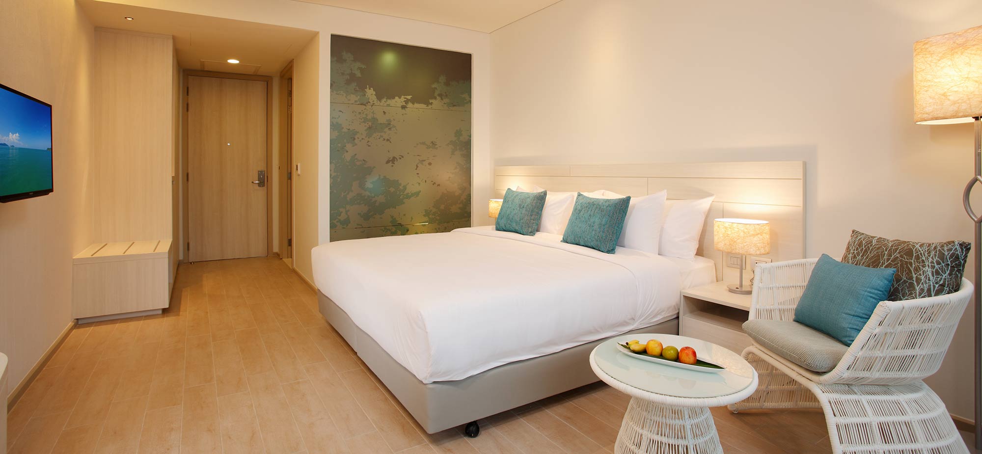 With a balcony that overlooks the gardens, the 134 Centra Superior rooms offer you 35 square metres of living space - a comfortable retreat for couples and the ideal base for families of up to 3 adults or 2 adults and 1 child, featuring a cosy king-sized bed or twin beds, and easy access to the pool area. All rooms have a minimalist décor with light wood furnishings and are on the ground floor. The airy bathroom has a full-size shower.